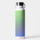 The bottle looks even better in real life. The ice cubes I put in lasts all day! I have my bottle with me all the time. It's summer and having something cold to drink feels amazing. With this bottle I always have something super cold. I have only tried the hot drink once and it lasted a long time as well. The color blue is a navy blue and the white printed on it is vibrant. It printed perfectly. I love my personalized smile water bottle.