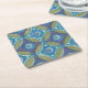 Blue Green Rustic Boho Geometric Circle Pattern Square Paper Coaster