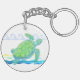 Blues, greens and yellows create this scene of marine life of a turtle and the bottom of the sea...crystalline waters allowing the yellow gold sand to show.