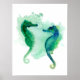 Poster with the turquoise blue green seahorses design of my own authorship. This is a print from my original seahorses watercolor painting titled "Pierre and Elise". One of a kind. You will love the poster!!!