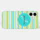 Blue green simple elegant Stripes Monogram Name Case-Mate iPhone Case
