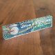 Desktop nameplate with ocean theme. A brown starfish and white sand dollar decorate the left edge. Background image is dark blue and turquoise swirls that resemble flowing water. Name and title is in white, printed text.