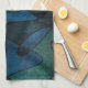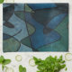 Blue Green Teal Digital Stained Glass Abstract Art Tea Towel