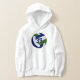 This custom volleyball team colours hoodie features the realistic image of a blue, green and white volleyball upon which you can personalise her jersey number - by katz_d_zynes