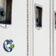 This sporty volleyball themed magnet girls or boys features the realistic image of a blue, green and white volleyball upon which you can customise the player's name & jersey number plus school or club name and mascot name in a varsity letter style font - by katz_d_zynes