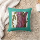 Blue-Green Tropical Painting of Tree and Bird Cushion
