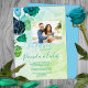 Gradient blue to green to aquamarine roses are beautiful with matching photo framing and silver foil leaves. Floral invitation design is versatile for turquoise, teal green, navy blue rose themes. Garden roses are perfect for any season. Hints of mint green, light blue, hunter green speckled into artwork.