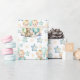 Cute gift wrap for a baby shower or new baby boy twins with teddy bear. Watercolor twin boys and blue and green stars.