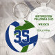 Choose your own colours! This team colours volleyball keychain features the image of a blue, green and white volleyball on the front and a simple white volleyball on the back - personalise with the athlete's jersey number on the front and name and team name on the back - to change the colours of the volleyball's blue & green panels and the text, click the "Edit this design" button (above) - by katz_d_zynes