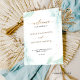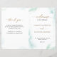 This elegant wedding ceremony program design features beautiful soft watercolor stains in blue and green hues and gold speckles. Use of hand written typography details in gold. Personalise the wording in all sides. NOTE: this programs arrive flat and require folding down the middle to assemble. The default value paper is recommended. Part of our "Airy Blue and Green Watercolor" collection.