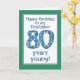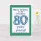 A stylish 80th Birthday Card for a Stepfather, with the number 80 made from a handpainted paper collage, in blue, green and white, coordinating with the lettering and the card's border. Don't forget you can easily customise the inside of this 80th Birthday Card.