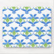A stylish mousepad, with an Art Nouveau pattern in bright blue, green and white, from a handpainted design by Judy Adamson.