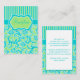 This modern and chic turquoise blue, apple green, and white striped floral damask reception enclosure card matches the wedding invitation shown below. You can also use it as a map or directions card or wedding information card by changing the text accordingly. ****PLEASE NOTE that everything will print as you see it on your monitor. I will not see your product and Zazzle will NOT edit anything for typos, alignment etc., so please make sure all your text is centred and error-free. If you need assistance, please email me BEFORE you place your order. If you require any matching items, please email your request to niteowlstudio@gmail.com.