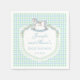 Elevate the sophistication of your French crest preppy baby boy shower adorned in baby blue and light green gingham paper napkins. Boasting a cute wooden rocking horse, these napkins bring an added touch of elegance to your event setup, enhancing its overall allure.