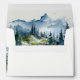 Blue Green Woods Mountain Landscape Sketch Wedding Envelope