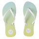 These personalised flip flops with a soft blue to green and yellow ombre look are easy to customise with a monogram initial in the circle frame. Enjoy them yourself, or give as a custom gift.