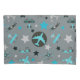 This fun and colourful kids pillow case has sky blue, black, and grey aeroplanes flying all over it! There are two styles of planes in different patterns and colours. Among the planes are matching blue, black, and grey stars. At the centre is a blue aeroplane framed in a black circle. Everything is placed on a medium grey background. Any boy who loves planes and flying will love this duvet cover!