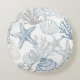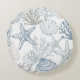 Blue Grey And Beige Beachy Starfish Seashell Round Cushion