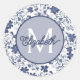 Blue Grey and White Floral Monogram Classic Round Sticker