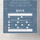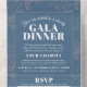 Blue grey white charity gala dinner or other evening fundraiser event all-in-one invitation. Personalise this detachable reply event invitation with your own event details, and add your RSVP this version includes getting your three-course meal choices back from your guests to keep hosting and wastage costs down on your detachable RSVPs. Other matching items are available. © Original design by www.mylittleeden.com on Zazzle.