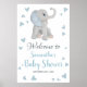 Blue Grey Boy Elephant Baby Shower Welcome Sign