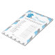 Blue and Grey Chevron Elephant Baby Shower Word Scramble Game Notepad. Word Scramble Answers: 1. Bassinet 2. Diaper 3. Bottle 4. Crib 5. Car Seat 6. Mobil 7. Shampoo 8. Towel 9. Baby Wipes 10. Pacifier 11. Stroller 12. Booties 100% Customisable. Ready to Fill in the box(es) or Click on the CUSTOMIZE button to add, move, delete, resize or change any of the font or graphics. Made with high resolution vector and/or digital graphics for a professional print. NOTE: (THIS IS A PRINT. All zazzle product designs are "prints" unless otherwise stated under "About This Product" area) The design will be printed EXACTLY like you see it on the screen and on the product...so please make sure when you do your changes on the resizing of any of the graphics or text that it fits in the areas correctly and that your spelling and wording is how you like it to be in size, colour and font. If you have any questions about this design please contact me at siggyscott@comcast.net or visit my store link: http://www.zazzle.com/designsbydonnasiggy?rf=238713599140281212 (Copy and Paste) I'll be happy to help. Thank you for the support and stopping by my store - DesignsbyDonnaSiggy. © Donna Siegrist