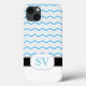 Personalised modern, fresh, and trendy Case-Mate Barely There iPad 2/3/4 Case designed with an alternating blue and grey chevron zigzag pattern, and custom printed with your monogram / initials.