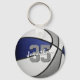 This cool basketball themed keychain features the realistic image of a basketball that has alternating blue, white and grey recolored panels on the front and a simple blue basketball shape on the back - easily personalise with player name & jersey number on the front and school or club name & mascot name on the back - by katz_d_zynes