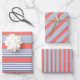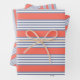 Blue-grey five stripe pattern with living coral wrapping paper sheet