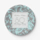 Blue Grey Floral 80th Birthday Party Paper Plate