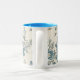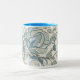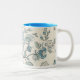 Nice coffee mug featuring a soft blue grey flowers pattern against a lily white background.