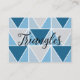Blue Grey Geometric Triangles Modern Business Card designed by Nisha Prabhu. Fully Customisable. Personalise with your details. The Blue Grey Geometric Triangles Modern Business Card showcases a sleek and contemporary design. The card features a combination of shades of blue and grey arranged in a geometric triangle pattern, exuding a sense of professionalism and sophistication. The triangles vary in size and orientation, creating a visually dynamic and eye-catching layout. The blue and grey colours blend harmoniously, adding a touch of elegance to the overall design. This modern business card is perfect for professionals in various industries who want to make a lasting impression with a stylish and sophisticated aesthetic.