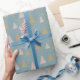Blue Grey Gold Glitter Shine Christmas Trees Wrapping Paper