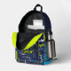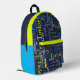 blue grey lime green personalised name all over printed backpack
