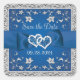 Blue, Grey Love Hearts Wedding Save the Date Square Sticker