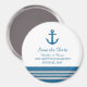 Elegant and classic Nautical Anchor Save the Date Magnet with a simple boat anchor and an array of stripes in dark navy blue and grey. This nautical beach themed save the date can be easily customised with your wedding details. For more customisation options, click on the Customise It button.