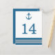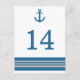 Elegant and classic Nautical Anchor Table Number Postcard with a simple boat anchor and an array of stripes in dark navy blue and grey. This nautical beach themed wedding table card can be easily customised with your wedding details. For more customisation options, click on the Customise It button.