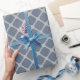 Blue-grey quatrefoil wrapping paper