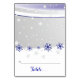 Blue, silver grey, white snowflake modern wedding folded escort place card, featuring stars and elegant blue snowflakes on grey. Text in blue and grey. A stylish design perfect for your winter, December or Christmas wedding. Fold it along the dotted line to have a tent style folded place card.