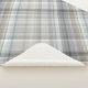 A colourful repeating plaid pattern of diagonal stripes in shades of blue, grey, and tan.