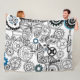 Blue Grey White Gears Steampunk Boys Decor Fleece Blanket
