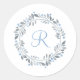 Blue Grey White Monogram Floral Wreath Envelope Classic Round Sticker