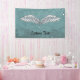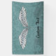 Wide open blue-grey wings illustration. Grunge blue background. Custom text.