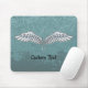 Wide open blue-grey wings illustration. Grunge blue background. Custom text.