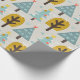 Blue Grey Yellow Christmas Tree Pattern Wrapping Paper