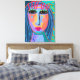 My colourful abstract digital portrait of a woman with blue hair printed on wrapped canvas