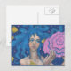 Blue Hair Mermaid Girl Sea Shell Fish Fantasy Art Postcard
