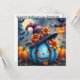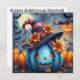 A cute blue pumpkin in a witches hate with orange flowers Halloween card that can be personalised with a name. Also the back is a cute colouring page!