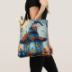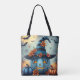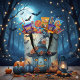 A cute witches hat on a blue pumpkin with a bat background Halloween personalised trick or treat bag.