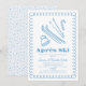 Invite friends and family to warm up after the slopes with this festive Après Ski holiday party invitation. The front design features hand-drawn skis, poles, a cosy beanie, and a playful candy cane—all framed by a curly doodle border in icy blue against a crisp white background.